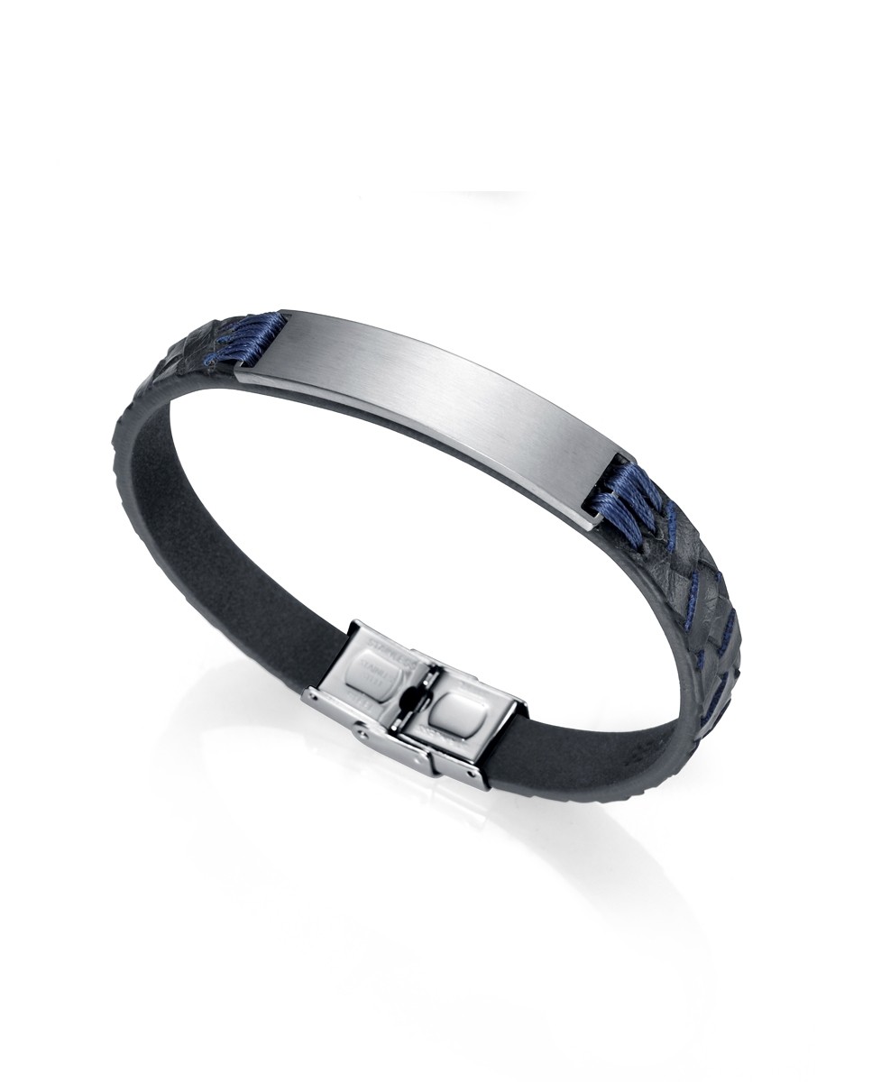 PULSERA VICEROY 75067P01013 PLACA DE ACERO Y PIEL AZUL