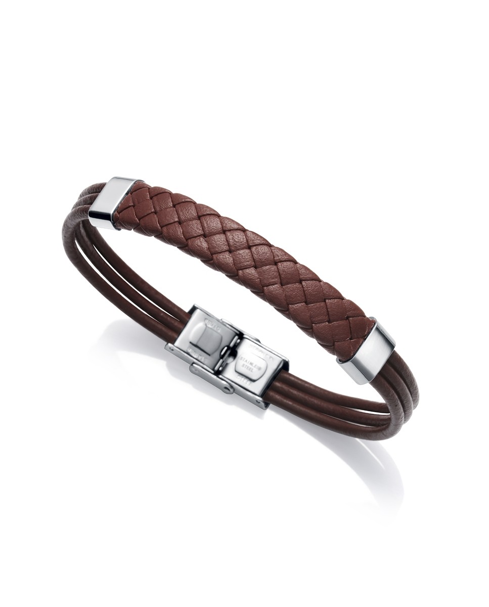 Pulsera de Hombre Viceroy Magnum de piel color marrón con piezas y cierre de acero. Parte central de piel trenzada y laterales con 3 tiras de piel tubular. Cierre hebilla (ajustable). Largo de 21, 5cm