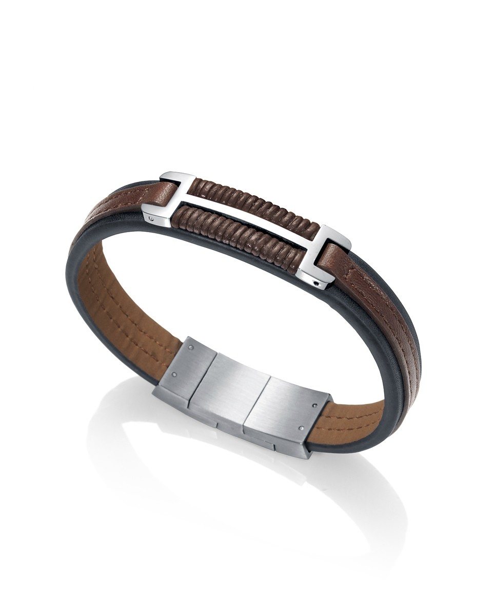 PULSERA VICEROY 75094P01011 ACERO Y PIEL BITONO PLACA CORDON