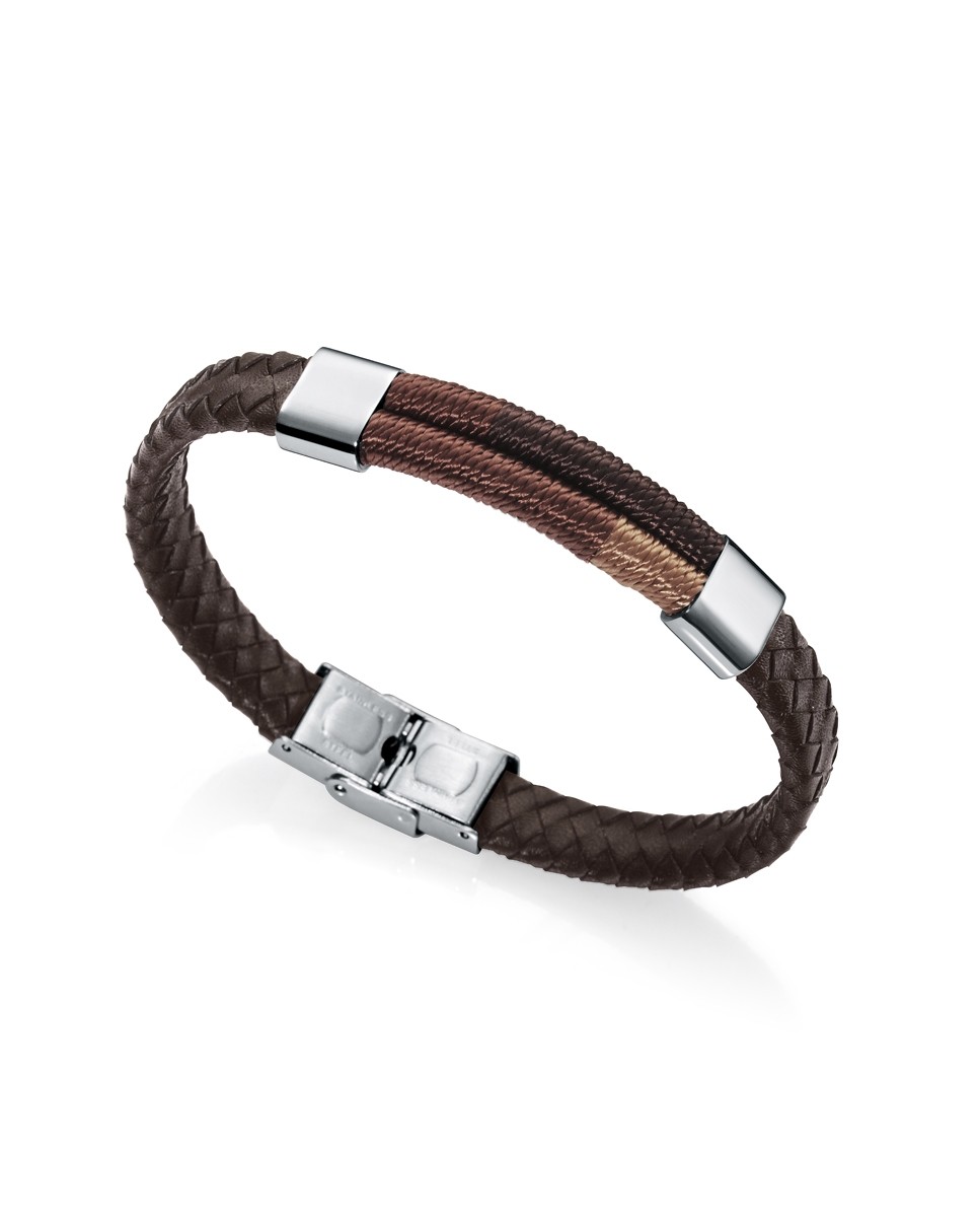 Pulsera Viceroy Heat de tonos marrones con piel trenzada y cordón en diferentes tonos, detalles en acero y cierre ajustable. Largo 21,5cm