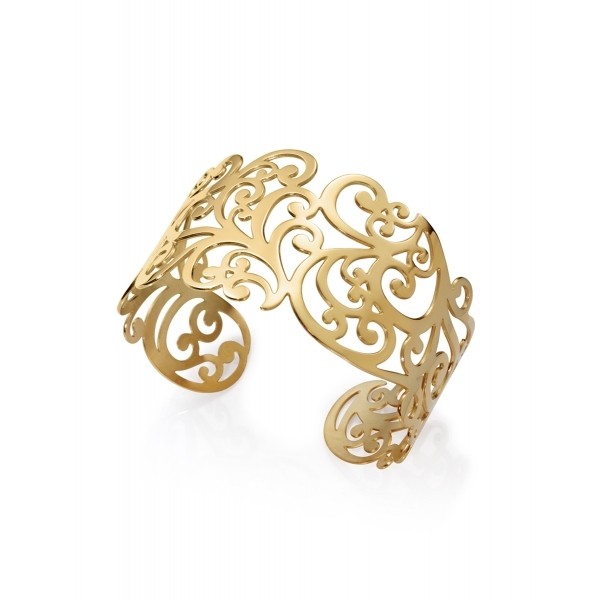 Pulsera abierta Viceroy dorada Chic en acero con calado floral de 3,7 cm de ancho.