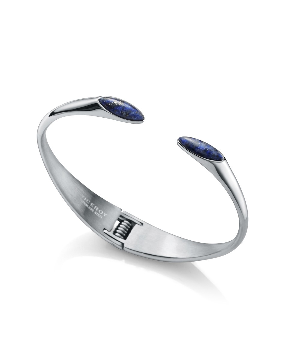 Pulsera Viceroy Chic abierta en acero con bisagra y piedras sintéticas azúles.