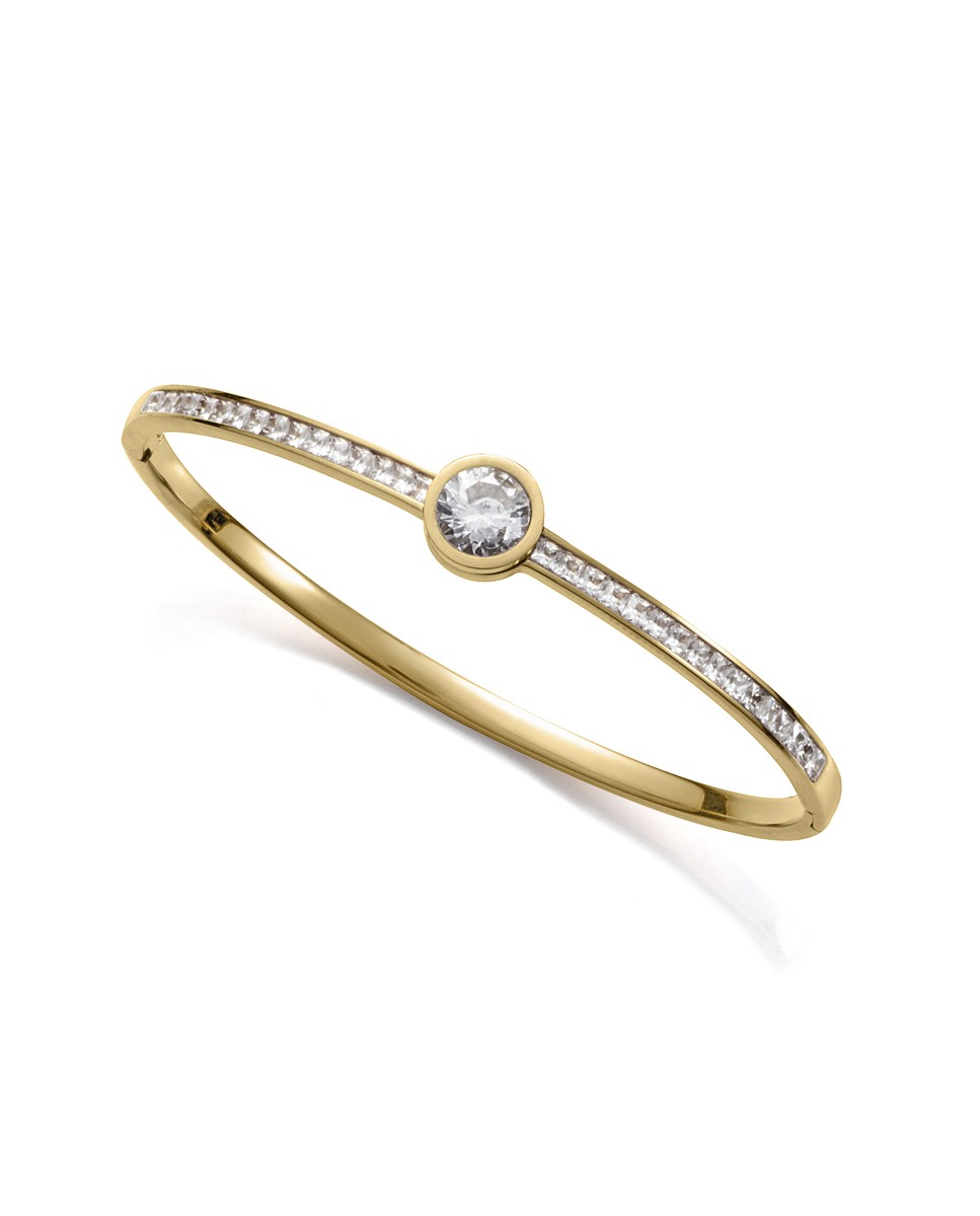 Pulsera Viceroy Chic de bisagra en dorado con circonitas en los brazos y una circonita central redonda.