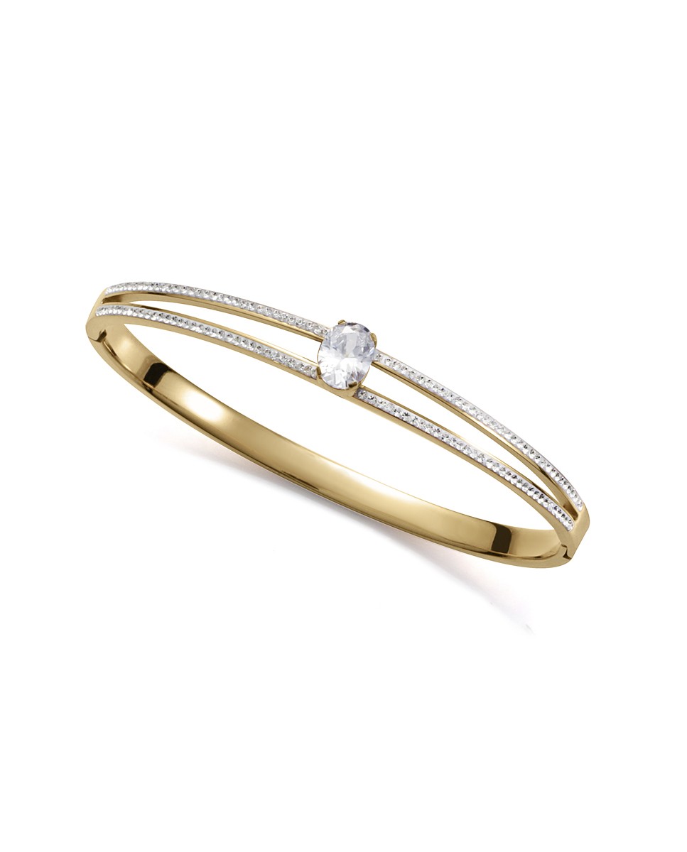 Pulsera Viceroy Chic de bisagra en dorado con dos tiras engastadas con circonitas y una circonita central.