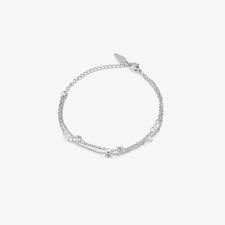 Pulsera Radiant Myfair mujer RY000275. Fabricada en acero inoxidable con un acabado brillante, esta pulsera destaca por su estructura de doble cadena delicadamente entrelazada y decorada con pequeños cristales que aportan un toque de brillo sutil.