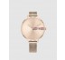 Reloj 2 agujas, caja redonda chapada en Rosa, esfera rosada. Brazalete de malla milanesa chapado.