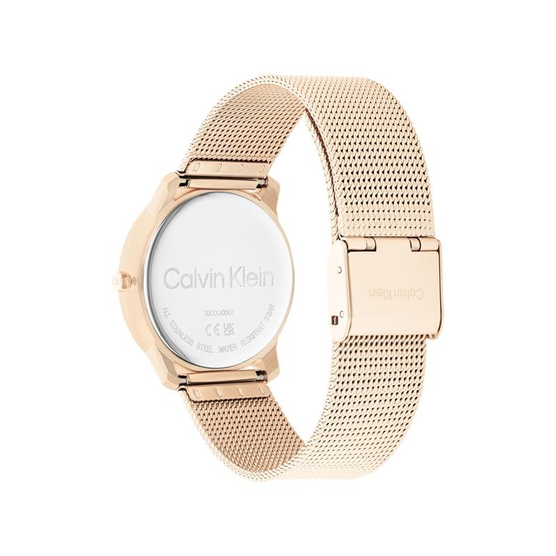 Reloj Calvin Klein para mujer de la colección Iconic Mesh fabricado en acero inoxidable en rosado. Se trata de un atractivo reloj de diseño femenino con caja de 35mm de diámetro en rosado que contiene esfera en oro rosa pálido al igual que sus agujas movidas por mecanismo de cuarzo analógico, todo ello protegido por cristal mineral. Su correa es de malla milanesa en color oro rosa con cierre deslizante. Resistente al agua hasta 30 metros.