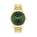 Reloj Calvin Klein para hombre de la colección CK Iconic fabricado en acero inoxidable bañado en oro. Estamos ante un reloj de diseño atractivo y elegante compuesto por caja de 40mm pavonada en oro amarillo con esfera verde tornasolada que cuenta con índices y agujas en dorado movidas por mecanismo de cuarzo analógico protegido por cristal mineral. Su correa la forman eslabones dorados con cierre desplegable. Resistente al agua hasta 30 metros.