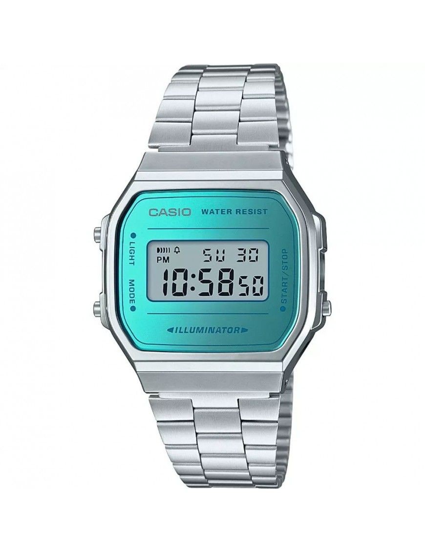 Reloj Casio Unisex A168WEM-2EF Retro Mirror. Es en un reloj original de la marca Casio, para hombre o mujer, es unisex, y pertenece a la línea Casio Retro Collection. Es un modelo digital con movimiento de cuarzo alimentado con pila de botón.