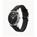 Reloj Emporio Armani para hombre de la colección Luigi fabricado en acero inoxidable plateado y piel en color negro. Se trata de un reloj de diseño elegante y sobrio con caja plateada de 48mm de diámetro que contiene esfera negra con índices y agujas en plateado movidas por mecanismo de cuarzo analógico con función de calendario protegido por cristal mineral. Su correa es de piel en color negro con cierre de hebilla. Resistenteal agua hasta 50 metros.