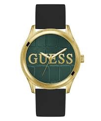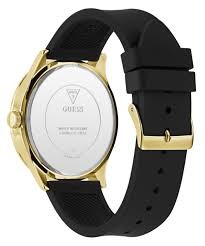 RELOJ GUESS CAJA ACERO DORADA CORREA SILICONA NEGRA GW0887G2