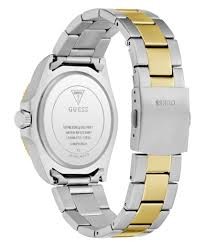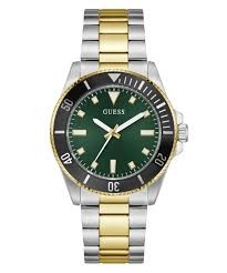 Reloj Guess Hombre GW0968G4 Cliff Acero Plateado Bicolor Dorado Analógico. Caja de acero plateado bicolor dorado de 43mm de diámetro. Bisel dorado. Brazalete de acero plateado bicolor dorado. Cierre desplegable. Esfera verde. Cristal mineral. Movimiento quartz. Sumergible 50m.
