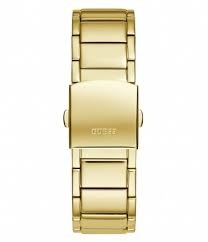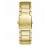 con movimiento de cuarzo multifunción, caja acero color oro, esfera verde y correa de acero con cierre de pulsador.