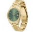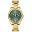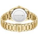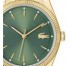 Reloj Lacoste para mujer de la colección Capucine fabricado en acero inoxidable ionizado en oro rosa. Estamos ante un elegante reloj al más puro estilo femenino compuesto por caja de 36mm de diámetro con esfera en color verde que contiene indicadores formados por barras en rosado al igual que sus agujas movidas por mecanismo de cuarzo analógico. Todo ello protegido por cristal mineral. Su brazalete lo forman eslabones rosados con cierre desplegable mediante doble pulsador. Resistente al agua hasta 3 ATM.