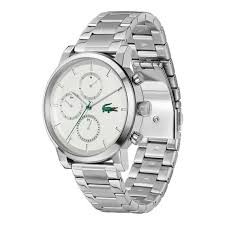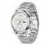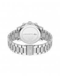 Reloj Lacoste para hombre de la colección Replay fabricado en acero inoxidable plateado. Estamos ante un reloj lleno de elegancia ya tractivo compuesto por caja de 44mm de diámetro con bisel plateado que contiene esfera blanca con indicadores en forma de barras plateadas al igual que sus agujas movidas por mecanismo multifunción. Todo ello protegido por cristal mineral. Su brazalete es de tipo armys y está formado por eslabones plateados con cierre desplegable mediante doble pulsador. Resistente al agua hasta 5 ATM.