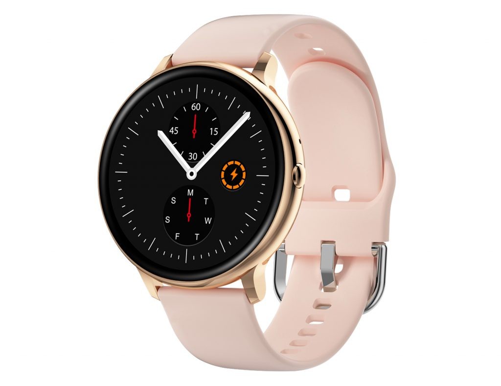RELOJ LISKA SMARTWATCH CON CAJA REDONDA ROSADA EN ACERO 2CORREAS UNA DE SILICONA ROSA Y OTRA DE ACERO MILANESA EN ROSA