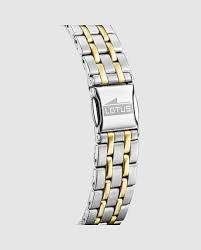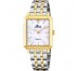 Reloj Lotus para mujer de la colección Square fabricado en acero inoxidable plateado y dorado. Este elegante reloj cuneta con caja rectangular de 28,3mm de ancho con bisel dorado. Su esfera es nacarada con indicadores en forma de barras doradas al igual que sus agujas movidas por mecanismo de cuarzo analógico. Todo ello protegido por cristal mineral. Su brazalete lo froman eslabones plateados y dorados con cierre desplegable mediante doble pulsador. Resistente al agua hasta 5 ATM.