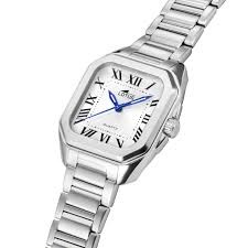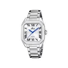 Reloj Lotus para mujer de diseño clásico y atemporal fabricado en acero inoxidable plateado. Este atractivo reloj cuenta con caja cuadrada de 35mm de ancho con esfera blanca que cuenta con números romanos en negro y agujas azules movidas por mecanismo japonés de cuarzo analógico. Todo ello protegido por cristal mineral. Su brazalete lo forman eslabones plateados con cierre desplegable mediante doble pulsador. Resistente al agua hasta 5 ATM.