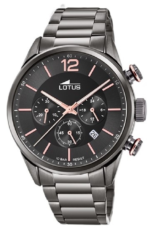 Reloj Lotus Chrono 18686/2 analógico para hombre con movimiento de cuarzo, correa de acero inoxidable y resistencia al agua de 100 metros.