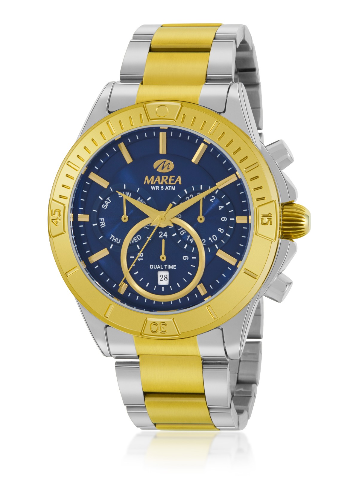 Esfera: Color azul oscuro con detalles y agujas en color dorado