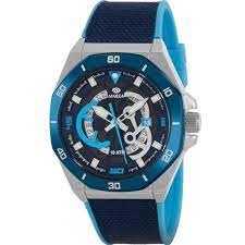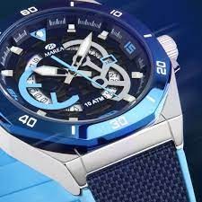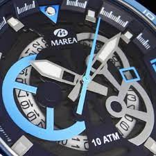 Reloj Marea Legend para hombre B35357/3 analógico con movimiento de cuarzo japonés y calendario. La caja es de acero inoxidable con bisel en negro y la correa de nylon negro sobre silicona azul. Tiene cristal mineral y fondo cerrado a rosca.