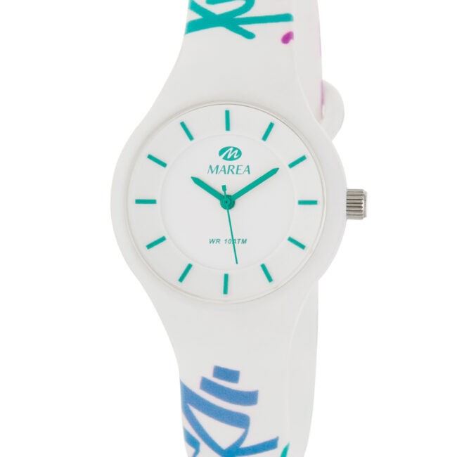 RELOJ MAREA CAJA Y CORREA SILICONA BLANCA Y LETRAS B35325/21