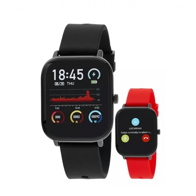 Este modelo destaca frente a los demás smartwatch de Marea por tener micrófono y altavoz, por lo tanto se pueden enviar o recibir llamadas desde el reloj. Caja rectangular de color negro con unas medidas de 35 x 41,5 mm y una pantalla de 1,3 pulgadas. Su batería de litio recargable de 160 mah tiene una duración de entre 5 y 7 días completos dependiendo del uso. Viene con dos correas, una de silicona roja y otra negra.