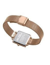Reloj Mark Maddox para mujer fabricado en acero inoxidable rosado. Estamos ante un atractivo reloj compuesto por caja cuadrada con bisel rosado de 26x33mm con esfera rosa que cuenta con indicadores en forma de barras plateadas al igual que sus agujas movidas por mecanismo de cuarzo analógico protegido por cristal mineral. Su brazalete es de malla milanesa en rosado con cierre desplizante de seguridad. Impermeable.