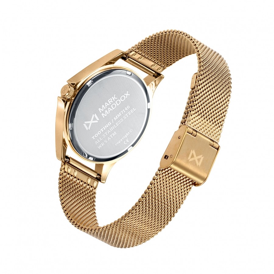 RELOJ MARK MADDOX MALLA ACERO DORADO ESFERA BRILLO MM7146-23