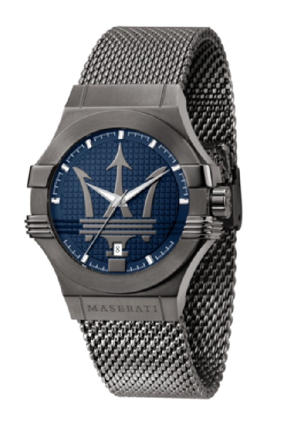 Reloj Maserati Potenza R8853108005 analógico para hombre con movimiento de cuarzo, correa milanesa y resistencia al agua de 100 metros.