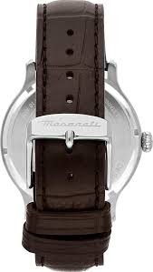 Reloj marca Maserati tiene una caja de Inox con un diámetro de 42 mm y cuenta con una correa de piel.