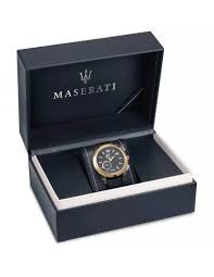 Este reloj marca Maserati tiene una caja de acero inoxidable con un diámetro de 45 mm y cuenta con una correa de piel. Dentro de la caja se encuentra un mecanismo de de alta calidad el cual esta protegido por un cristal Mineral.