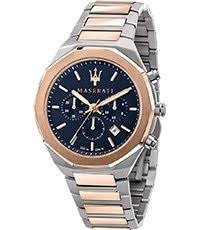 Este reloj marca Maserati tiene una caja de acero inoxidable con un diámetro de 45 mm y cuenta con una correa de metal. Dentro de la caja se encuentra un mecanismo de de alta calidad el cual esta protegido por un cristal Mineral.