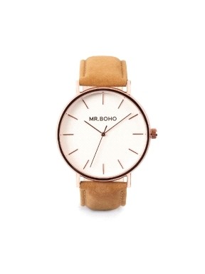 Reloj Rosado Copper Suede Esf.Blanca Correa Piel Marron. Esfera 42mm
