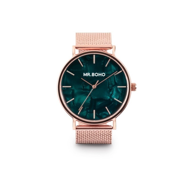 RELOJ MR BOHO Metallic Rosado Mop Negro - 40Mm Esfera verde