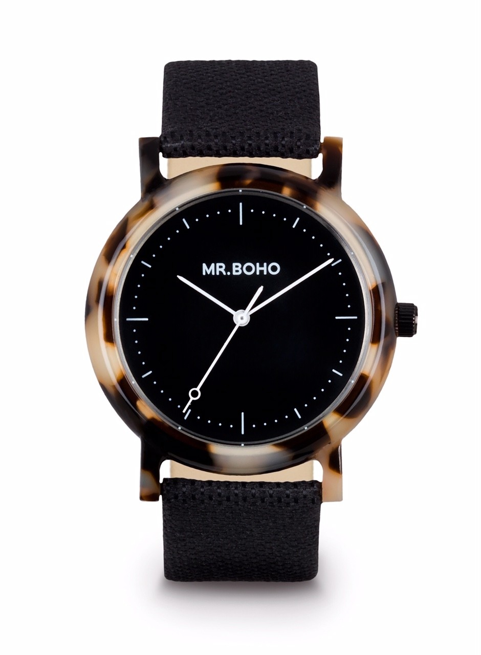 RELOJ MR BOHO CON CORREA NEGRA Y ESFERA CAREY NEGRO 38MM