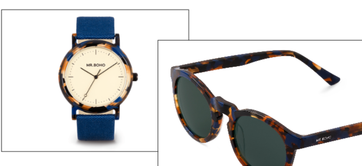 RELOJ MR BOHO CON CORREA AZUL CAJA DE CAREY Y GAFAS DE SOL DE REGALO