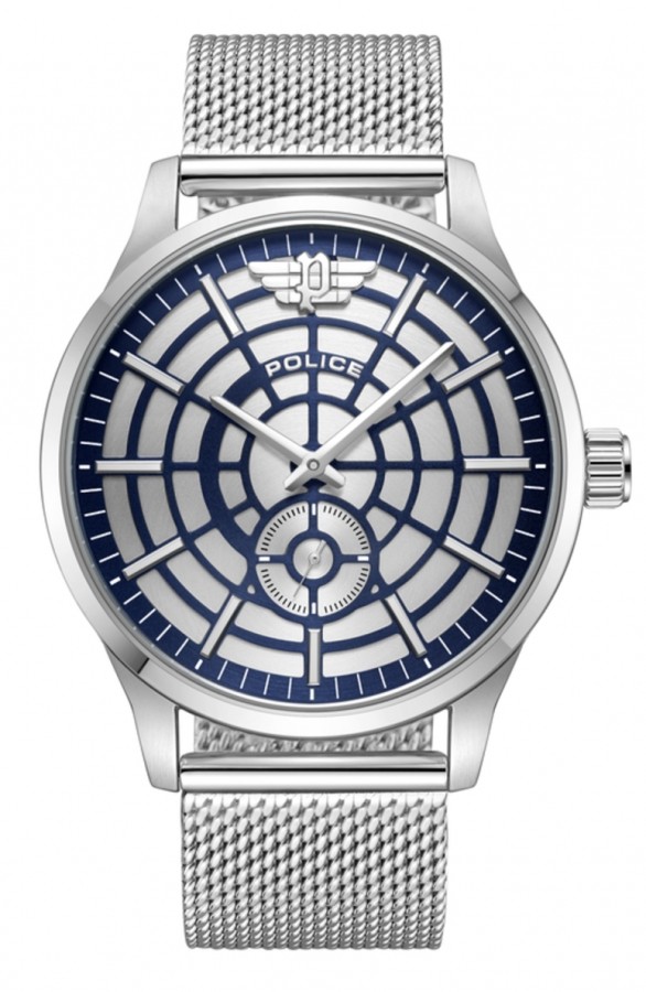Reloj Police Jet Grey Dial Ss Mesh 2h PEWJG0005204 analógico para hombre con movimiento de cuarzo, correa de acero inoxidable y resistencia al agua de 50 metros.