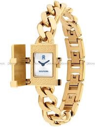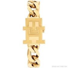 Reloj Tommy Hilfiger para mujer de la colección TH85 fabricado en acero inoxidable pavonado en oro amarillo. Estamos ante un reloj de diseño elegante compuesto por caja rectangular de 21mm de ancho con bisel dorado. Su esfera es blanca con agujas azules movidas por mecanismo de cuarzo analógico protegido por cristal mineral. Cuenta con tapa protectora. Su brazalete lo forman elegantes eslabones dorados con cierre de joyería. Resistente al agua hasta 3 ATM.