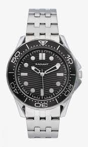 Reloj Radiant para hombre de la colección Chris fabricado en acero inoxidable plateado y negro. Estamos ante un reloj de diseño elegante y atractivo compuesto por caja de 42mm con bisel negro al igual que su esfera con indicadores y agujas en plateado movidas por mecanismo de cuarzo anlógico protegido por cristal mineral. Su brazalete lo forman eslabones plateados con cierre desplegable mediante doble pulsador. Resistente al agua hasta 5 ATM.