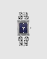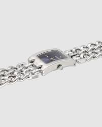 Reloj de mujer Donatella RA672202 de acero y correa plateada. El reloj Donatella con caja y pulsera plateadas y esfera azul profundo representa una versión moderna del lujo accesible. Su caja rectangular de 26,7 x 34 mm en acabado metálico combina a la perfección con la pulsera de eslabones gruesos de acero, proyectando fuerza y feminidad. La esfera azul marino, decorada con un patrón radial, aporta contraste y profundidad al conjunto.