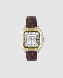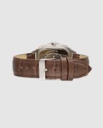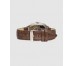 Reloj de hombre Chris him RA676204 de piel y correa marrón. El Chris HIM dorado fusiona lujo sutil con diseño responsable. Su caja metálica rectangular de 37,5 x 47,5 mm combina acabados plateados y dorados, proyectando una imagen de elegancia y contraste sofisticado. La esfera blanca, con números romanos y detalles oscuros, mantiene la claridad visual y refuerza su carácter clásico. La correa marrón en acabado cocodrilo, realizada en cuero vegano, proporciona un ajuste cómodo y un aspecto premium,