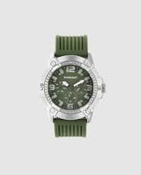 Reloj de hombre Eminem RA682703 de silicona y correa verde. El reloj para hombre Eminem en verde militar ofrece una estética outdoor con espíritu urbano, ideal para Hombres activos que buscan diseño y resistencia. Su caja metálica de 44 mm en acabado acero encierra una esfera verde con numeración sobredimensionada y subesferas funcionales. El contraste con los detalles en blanco facilita la legibilidad. La correa de silicona verde oliva acompaña el conjunto con comodidad,