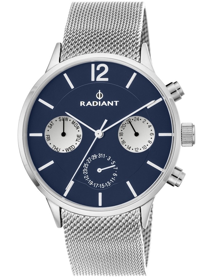 Reloj Radiant North Week Blue/ Silver RA418704 analógico para hombre con movimiento de cuarzo, correa milanesa y resistencia al agua de 30 metros.