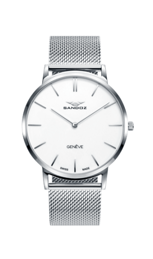 Reloj Sandoz caballero con correa de acero esterilla 40mm, Suizo, zafiro, impermeable (30m)