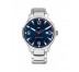 Reloj de tres agujas, caja de 44mm de acero inoxidable, esfera azul marino tornasolada. brazalete de eslabones en acero inoxidable. 3 atm.
