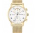 Este reloj marca Tommy Hilfiger tiene una caja de acero inoxidable con un diámetro de 44 mm y cuenta con una correa de metal. Dentro de la caja se encuentra un mecanismo de de alta calidad el cual esta protegido por un cristal Mineral.