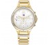 Este reloj marca Tommy Hilfiger tiene una caja de Acero inoxidable con revestimiento dorado con un diámetro de 38 mm y cuenta con una correa de metal. Dentro de la caja se encuentra un mecanismo de de alta calidad el cual esta protegido por un cristal Mineral.