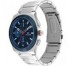 Reloj Tommy Hilfiger para hombre de la colección Connor fabricado en acero inoxidable plateado y azul. Se trata de un elegante reloj con caja en color azul de 44mm de diámetro que contiene esfera azul con índices y agujas plateadas movidas por mecanismo Multifunción protegido por cristal mineral. Su correa la componen eslabones plateados con cierre desplegable. Resistente al agua hasta 50 metros.