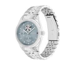 Reloj en acero con caja de 38 mm., cristal mineral y sumergible 3 atm. o 30 metros. Su movimiento es de cuarzo con parte vista por la parte delantera.